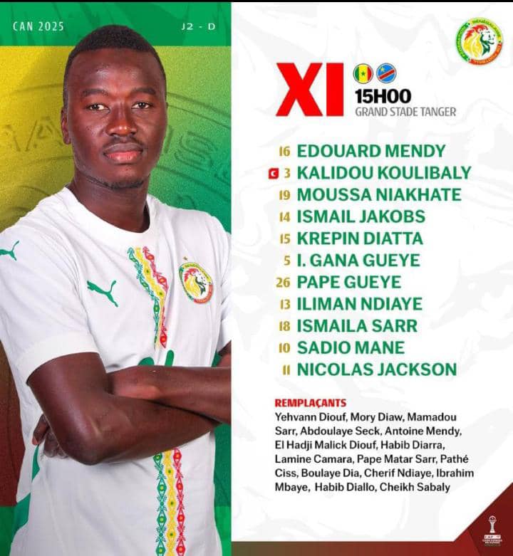 Le Sénégal va affronter la République Démocratique du Congo ce samedi à 15h dans le cadre de la deuxième journée de la Coupe d’Afrique des Nations. Le sélectionneur Pape Thiaw, a reconduit le même onze que le premier match.