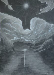 « Quand je dessine, le temps s’arrête, je ne réfléchis plus », confie-t-elle, décrivant cet état méditatif qui caractérise sa pratique. Loin de toute ambition commerciale, elle puise dans le dessin une forme de déconnexion et d’expression personnelle.Son choix du graphite relève d’abord d’une démarche d’apprentissage technique, mais devient rapidement un langage artistique à part entière. « Tout se joue entre la lumière et l’obscurité.