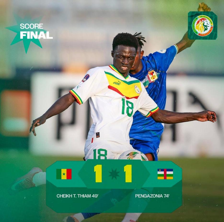 Lors de leur premier match de la compétition, l’équipe nationale sénégalaise a été tenue en échec par la République Centrafricaine, avec un score de 1-1. Bien que Ibrahima Thiam ait ouvert le score à la 49e minute, les Sénégalais n’ont pas su capitaliser sur leur domination et ont perdu leur avantage lorsque les Centrafricains ont égalisé à la 74e minute.