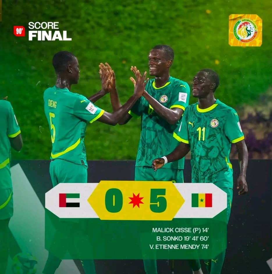Le Sénégal a réalisé une performance impressionnante ce dimanche en battant les Émirats arabes unis 5-0, lors de la troisième et dernière journée de la Coupe du monde U17 au Qatar.