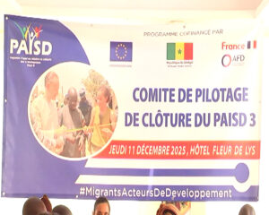 La cérémonie de clôture de la troisième phase du Programme d’Appui aux initiatives de Solidarité pour le Développement (PAISD 3) s’est tenue ce jeudi 11 décembre 2025. Mis en œuvre par l’État du Sénégal, le programme cible des secteurs prioritaires tels que l’éducation, la santé et l’hydraulique, avec pour ambition d’améliorer durablement les conditions de vie des populations.