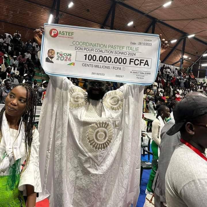 À l’occasion de la cérémonie d’investiture du candidat Ousmane SONKO organisée par PASTEF-ITALIE, les patriotes ont mobilisé un montant de 100 millions F CFA. L’objectif est de soutenir ce dernier à la campagne Présidentielle 2024.