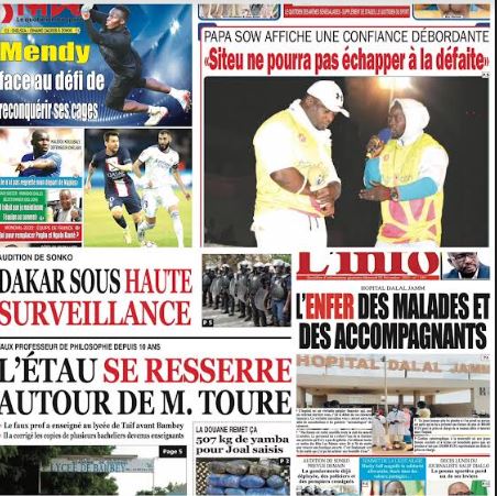 La une des journaux du 02 Novembre: C1: Chelsea/Dinamo Zagreb à 20h, Mendy face au défi de reconquérir ses cages; Papa Sow affiche une confiance débordante, « Siteu ne pourra pas échapper à la défaite »; Audition de Sonko, Dakar sous haute surveillance; Hopital Dalal Jamm, l’enfer des malades et des accompagnants
