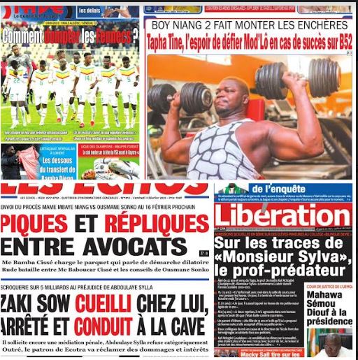 La une des journaux du 03 Février: Agressions sexuelles en série sur des élèves-mineures à « Bilingue de vie », sur les traces de M. Sylva le prof-prédateur