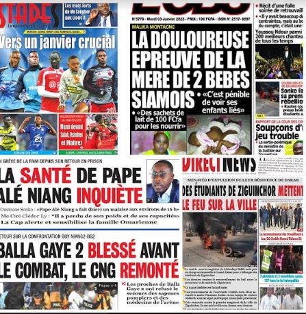 Accueil A la Une La une des journaux du 03 Janvier: Malika, la douloureuse épreuve de... A la Une La une des journaux du 03 Janvier: Malika, la douloureuse épreuve de la mère de 2 bébés Siamois… Par ledakaroistv - janvier 3, 2023 FacebookTwitterPinterestWhatsApp ARTICLES CONNEXESPLUS DE L'AUTEUR A la Une Braquage de coffre-fort à la BICIS : Mme Awa Diop dénonce le silence des autorités A la Une Protection des enfants contre les addictions: SABS mobilise la communauté éducative vers la sensibilisation A la Une Guinée-Bissau : des organisations panafricaines et la diaspora bissau-guinéenne mobilisées à Dakar pour dénoncer une confiscation du pouvoir Braquage de coffre-fort à la BICIS : Mme Awa Diop dénonce... A la Une décembre 13, 2025 Protection des enfants contre les addictions: SABS mobilise la communauté éducative... A la Une décembre 13, 2025 Guinée-Bissau : des organisations panafricaines et la diaspora bissau-guinéenne mobilisées à... A la Une décembre 13, 2025 CAN 2025 : Assane Diao et Habib Diarra sur la liste... A la Une décembre 13, 2025 Après la baisse du carburant: Aftu annonce une réduction du prix... A la Une décembre 13, 2025