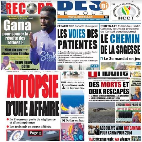 La une des journaux du 03 Septembre: Gana Gueye pour sonner la révolte des Toffees? Décès de Mamy Doura Diallo, le procureur parle de négligence et d’incompétence; Césarienne enquête chirurgicale, les voies des patientes; Chavirement d’une pirogue à Soumbédioune, des morts et deux rescapés