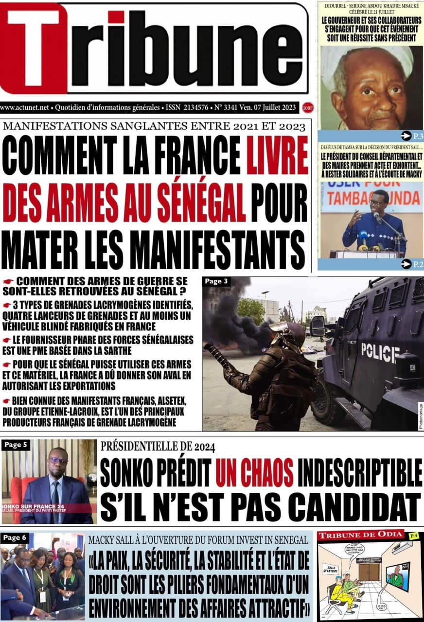 La une des journaux du 07 Juillet: comment la France livre des armes au Sénégal pour mater les manifestants