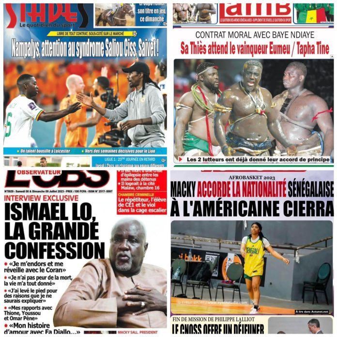 Accueil A la Une La une des journaux du 08 juillet: Afrobasket 2023, Macky accorde la... A la Une La une des journaux du 08 juillet: Afrobasket 2023, Macky accorde la nationalité sénégalaise à l’américaine Cierra Par ledakaroistv - juillet 8, 2023 FacebookTwitterPinterestWhatsApp ARTICLES CONNEXESPLUS DE L'AUTEUR A la Une Extradition de Madiambal Diagne : Le Tribunal de Versailles a mis en délibéré le 3 mars 2026 A la Une Comment les Sénégalais et les Marocains sont-ils des frères ? A la Une Polémique sur les 80 ha à Mbour : Babacar Ngom renonce au titre foncier au profit de l’État du Sénégal Transport urbain à Dakar : Cohabitation entre Transports en Commun et... Société février 3, 2026 Extradition de Madiambal Diagne : Le Tribunal de Versailles a mis... A la Une février 3, 2026 Élections départementales et municipales: l’alerte du FDR ! Politique février 3, 2026 Comment les Sénégalais et les Marocains sont-ils des frères ? A la Une février 1, 2026 Sûreté urbaine de Dakar: Doudou Wade convoqué ce vendredi Société janvier 30, 2026