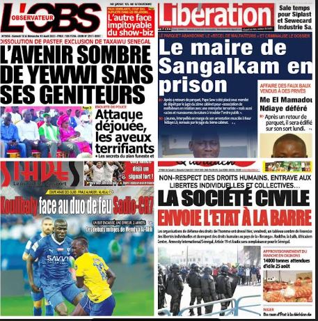 Accueil A la Une La une des journaux du 12 Août: non respect des droits humains,... A la Une La une des journaux du 12 Août: non respect des droits humains, entrave aux libertés individuelles et collectives, la société civile envoie l’État à la barre Par ledakaroistv - août 12, 2023 FacebookTwitterPinterestWhatsApp ARTICLES CONNEXESPLUS DE L'AUTEUR A la Une Urgent: La Fédération Sénégalaise de Lutte (FSL) annonce la suspension provisoire des faces-à-faces et open presse A la Une Extradition de Madiambal Diagne : Le Tribunal de Versailles a mis en délibéré le 3 mars 2026 A la Une Comment les Sénégalais et les Marocains sont-ils des frères ? Urgent: La Fédération Sénégalaise de Lutte (FSL) annonce la suspension provisoire... A la Une février 4, 2026 Transport urbain à Dakar : Cohabitation entre Transports en Commun et... Société février 3, 2026 Extradition de Madiambal Diagne : Le Tribunal de Versailles a mis... A la Une février 3, 2026 Élections départementales et municipales: l’alerte du FDR ! Politique février 3, 2026 Comment les Sénégalais et les Marocains sont-ils des frères ? A la Une février 1, 2026