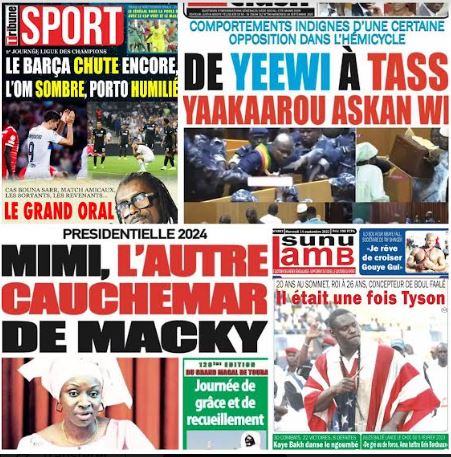 La une des journaux du 14 Septembre: Le Barça chute encore, L’OM sombre, Porto humilié; Comportement indigne d’une certaine opposition, de Yewwi à Tass Yaakaarou Askan Wi; Présidentielle 2024, Mimi, l’autre cauchemar de Macky; 20 ans au sommet, roi à 26 ans, concepteur de Boul Faalé II était une fois Tyson