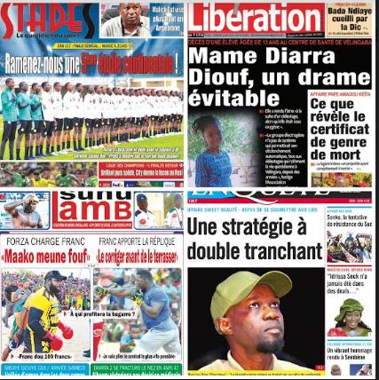 Accueil A la Une La une des journaux du 19 Mai: Décès d’une élève âgée de... A la Une La une des journaux du 19 Mai: Décès d’une élève âgée de 13 ans, au centre de santé de Vélingara, Mame Diarra Diouf, un drame évitable Par ledakaroistv - mai 19, 2023 FacebookTwitterPinterestWhatsApp ARTICLES CONNEXESPLUS DE L'AUTEUR A la Une Extradition de Madiambal Diagne : Le Tribunal de Versailles a mis en délibéré le 3 mars 2026 A la Une Comment les Sénégalais et les Marocains sont-ils des frères ? A la Une Polémique sur les 80 ha à Mbour : Babacar Ngom renonce au titre foncier au profit de l’État du Sénégal Transport urbain à Dakar : Cohabitation entre Transports en Commun et... Société février 3, 2026 Extradition de Madiambal Diagne : Le Tribunal de Versailles a mis... A la Une février 3, 2026 Élections départementales et municipales: l’alerte du FDR ! Politique février 3, 2026 Comment les Sénégalais et les Marocains sont-ils des frères ? A la Une février 1, 2026 Sûreté urbaine de Dakar: Doudou Wade convoqué ce vendredi Société janvier 30, 2026