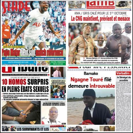 Accueil A la Une La une des journaux du 21 août: affaire de mœurs à la... A la Une La une des journaux du 21 août: affaire de mœurs à la Cité Mixta, 10 homos surpris en pleins ébats sexuels Par ledakaroistv - août 21, 2023 FacebookTwitterPinterestWhatsApp ARTICLES CONNEXESPLUS DE L'AUTEUR A la Une Urgent: La Fédération Sénégalaise de Lutte (FSL) annonce la suspension provisoire des faces-à-faces et open presse A la Une Extradition de Madiambal Diagne : Le Tribunal de Versailles a mis en délibéré le 3 mars 2026 A la Une Comment les Sénégalais et les Marocains sont-ils des frères ? Urgent: La Fédération Sénégalaise de Lutte (FSL) annonce la suspension provisoire... A la Une février 4, 2026 Transport urbain à Dakar : Cohabitation entre Transports en Commun et... Société février 3, 2026 Extradition de Madiambal Diagne : Le Tribunal de Versailles a mis... A la Une février 3, 2026 Élections départementales et municipales: l’alerte du FDR ! Politique février 3, 2026 Comment les Sénégalais et les Marocains sont-ils des frères ? A la Une février 1, 2026