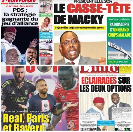 La une des journaux du 25 Aout: présidentielle 2024, le casse-tête de Macky; Yaw-Wallu, éclairages sur les deux options; législatives 2022, PDS la stratégie gagnante du jeu d’alliance; Ligue des champions, tirage à 16: Real, Paris et Bayern