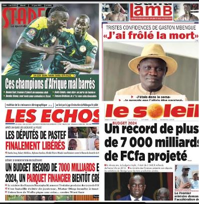 Accueil A la Une La une des journaux du 27 Juin: après 24h dans les locaux... A la Une La une des journaux du 27 Juin: après 24h dans les locaux de la police, les députés de Pastef finalement libérés Par ledakaroistv - juin 27, 2023 FacebookTwitterPinterestWhatsApp ARTICLES CONNEXESPLUS DE L'AUTEUR A la Une Extradition de Madiambal Diagne : Le Tribunal de Versailles a mis en délibéré le 3 mars 2026 A la Une Comment les Sénégalais et les Marocains sont-ils des frères ? A la Une Polémique sur les 80 ha à Mbour : Babacar Ngom renonce au titre foncier au profit de l’État du Sénégal Transport urbain à Dakar : Cohabitation entre Transports en Commun et... Société février 3, 2026 Extradition de Madiambal Diagne : Le Tribunal de Versailles a mis... A la Une février 3, 2026 Élections départementales et municipales: l’alerte du FDR ! Politique février 3, 2026 Comment les Sénégalais et les Marocains sont-ils des frères ? A la Une février 1, 2026 Sûreté urbaine de Dakar: Doudou Wade convoqué ce vendredi Société janvier 30, 2026