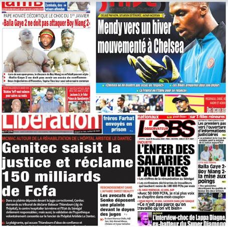 Accueil A la Une La une des journaux du 29 Décembre: Mendy vers un hiver mouvementé... A la Une La une des journaux du 29 Décembre: Mendy vers un hiver mouvementé à Chelsea; Genitec saisit la justice et réclame 150 milliards de FCFA… Par ledakaroistv - décembre 29, 2022 FacebookTwitterPinterestWhatsApp ARTICLES CONNEXESPLUS DE L'AUTEUR A la Une Braquage de coffre-fort à la BICIS : Mme Awa Diop dénonce le silence des autorités A la Une Protection des enfants contre les addictions: SABS mobilise la communauté éducative vers la sensibilisation A la Une Guinée-Bissau : des organisations panafricaines et la diaspora bissau-guinéenne mobilisées à Dakar pour dénoncer une confiscation du pouvoir Braquage de coffre-fort à la BICIS : Mme Awa Diop dénonce... A la Une décembre 13, 2025 Protection des enfants contre les addictions: SABS mobilise la communauté éducative... A la Une décembre 13, 2025 Guinée-Bissau : des organisations panafricaines et la diaspora bissau-guinéenne mobilisées à... A la Une décembre 13, 2025 CAN 2025 : Assane Diao et Habib Diarra sur la liste... A la Une décembre 13, 2025 Après la baisse du carburant: Aftu annonce une réduction du prix... A la Une décembre 13, 2025