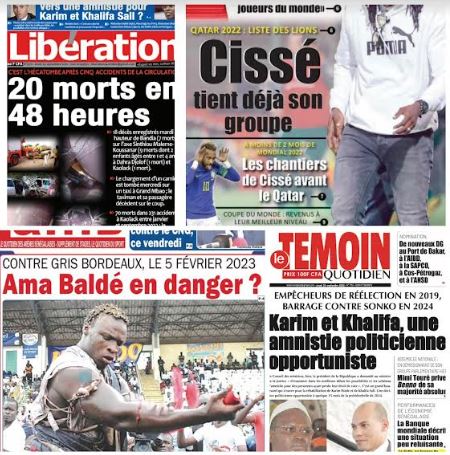 La une des journaux du 29 Septembre : C’est l’hécatombe après cinq accidents de la circulation ; Qatar 2022, Aliou Cissé tient déjà son groupe ; Contre Gris Bordeaux le 5 février 2023, Ama Baldé en danger? Karim et Khalifa, une amnistie politicienne opportuniste