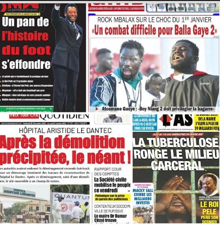 Accueil A la Une La une des journaux du 30 Décembre: Plus de 70 cas enregistrés... A la Une La une des journaux du 30 Décembre: Plus de 70 cas enregistrés en 4 ans, la tuberculose ronge le milieu carcéral… Par ledakaroistv - décembre 30, 2022 FacebookTwitterPinterestWhatsApp ARTICLES CONNEXESPLUS DE L'AUTEUR A la Une ECOFEST 2025: Dakar consacre les talents et renforce le pont culturel ouest-africain A la Une Le tirage au sort des groupes pour la Coupe du Monde 2026 : le Sénégal dans une poule très difficile avec la France et... A la Une Valorisation inclusive de la destination Sénégal : Téranga Sénégal Awards met en valeur la richesse et la diversité culturelle du Sénégal ECOFEST 2025: Dakar consacre les talents et renforce le pont culturel... A la Une décembre 6, 2025 Le tirage au sort des groupes pour la Coupe du Monde... A la Une décembre 6, 2025 Valorisation inclusive de la destination Sénégal : Téranga Sénégal Awards met... A la Une décembre 6, 2025 Première Édition ECOFEST : l’ ambassadeur de la Côte d’Ivoire a... Société décembre 4, 2025 Première édition d’ECOFEST : Le cousinage à plaisanterie, un levier de... A la Une décembre 4, 2025
