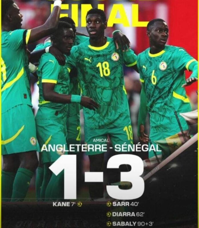L’équipe nationale du Sénégal a affronté ce mardi 10 juin à 18h45 l’Angleterre, au City Ground Stadium de Nottingham. C’était à l’occasion de son deuxième match amical de la fenêtre internationale de juin. Après leur match nul face à l’Irlande vendredi dernier (1-1), les lions de la teranga ont pris leur revanche face aux anglais (3-1).