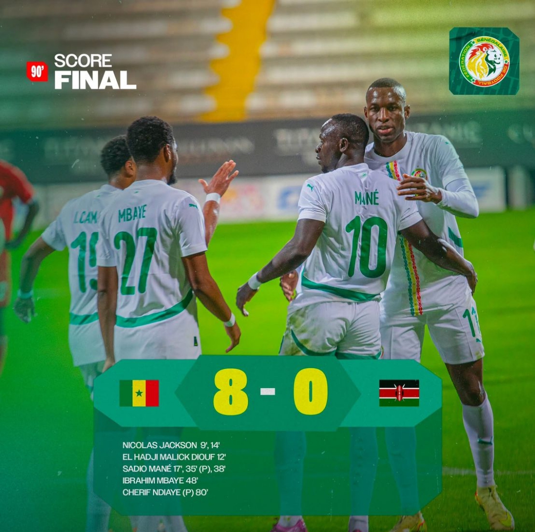 Pour sa première sélection, Ibrahima Mbaye a su saisir sa chance, inscrivant un magnifique but face au Kenya et offrant deux passes décisives, tandis que Sadio Mané a également brillé en marquant un triplé. Nicolas Jackson a quant à lui marqué à deux reprises, et El Hadji Malick Diouf ainsi que Cherif Ndiaye ont également contribué à la victoire écrasante de 8-0 du Sénégal.