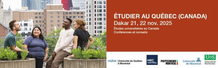 Une délégation composée de cinq universités québécoises sera présente à Dakar les 21 et 22 novembre 2025. L’objectif est de rencontrer les étudiants et les parents dans le cadre d’un événement dédié à la promotion des études postbac au sein de nos universités. Mieux encore, offrir une information claire et personnalisée sur les programmes d’études, les conditions d’admission, ainsi que l’expérience de vie sur leurs campus. Par cette occasion, les représentants des universités seront disponibles pour répondre aux questions, guider les futurs candidat.e.s et les accompagner dans leur projet d’études.