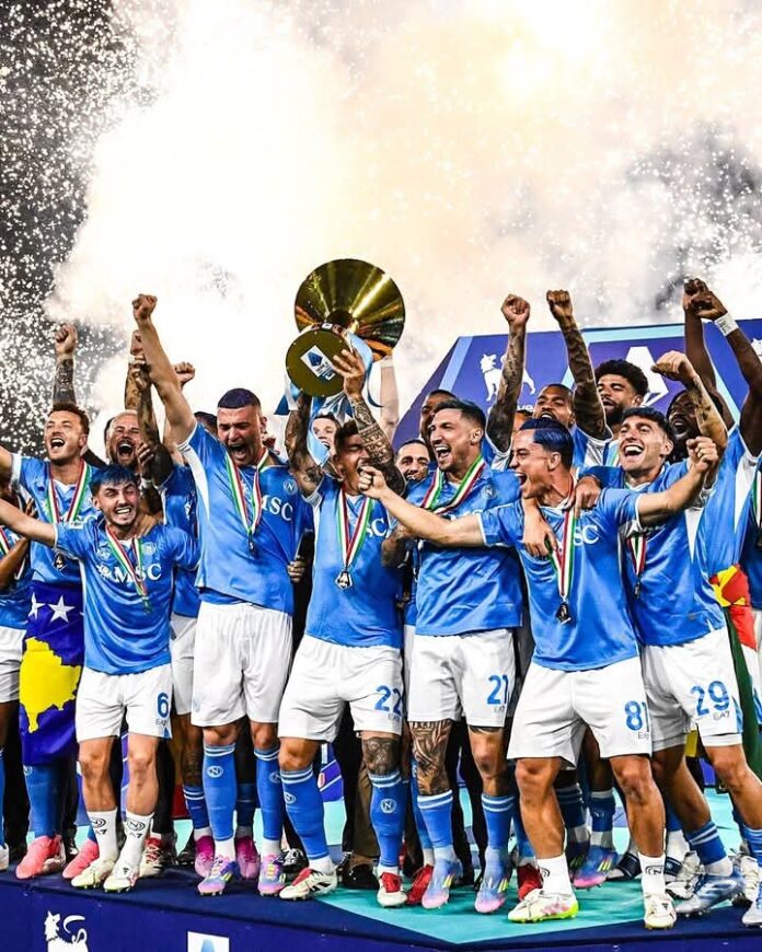 Dans une saison marquée par un suspense insoutenable jusqu’à la dernière journée, les joueurs napolitains ont finalement conquis leur quatrième titre de champions avec un seul point d’écart (82pts) devant l’Inter Milan (81pts).
